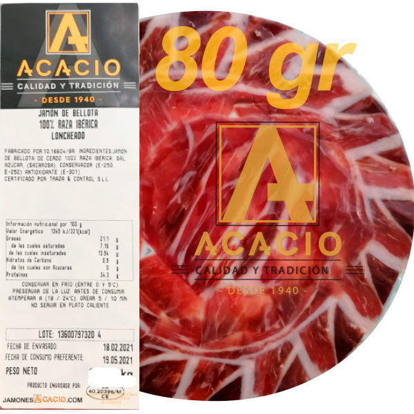 Los sobres de este producto, cuidadosamente seleccionado se presenta loncheado a cuchillo por maestros cortadores en bolsas de vacío, que garantizan una larga vida del producto, así como una forma muy cómoda de almacenamiento. Si por el contrario, es usted reacio a este tipo de envasado, también podemos ofrecerle un envasado en bandeja con atmósfera protectora. Este tipo de envase además de mantener el producto intacto, presenta la ventaja de mantener la textura completamente intacta debido a la ausencia de vacío y el «prensado» que se practica en el vacío. Aunque también presenta una vida útil de más de 90 días, recomendamos consumir en menos tiempo.