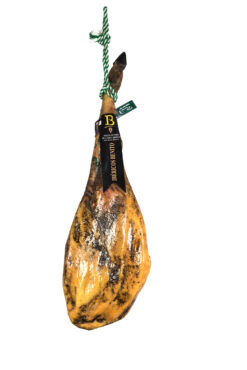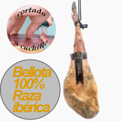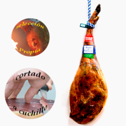 Excelente jamón de cebo de campo 50% raza ibérica cuidadosamente seleccionado y cortado a cuchillo por nuestros maestros cortadores.
