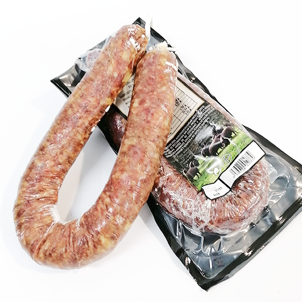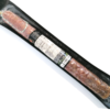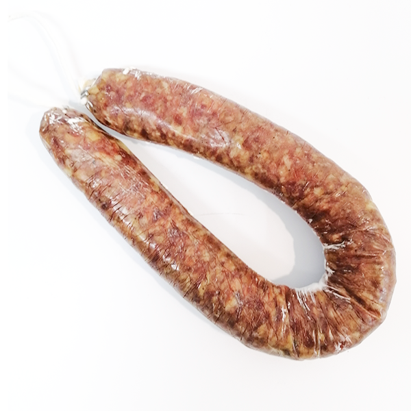 Esta longaniza de salchichón ibérico está elaborado con magro y tocino de cerdos ibéricos. Se producen mediante la receta tradicional realizando el picado de ambos ingredientes principales y añadiéndole una mezcla de pimentón y especias para conseguir un producto exquisito. Posteriormente al embutido se dejan secar el bodegas y se envasan al vacío para frenar el proceso de secado en su punto óptimo de maduración.