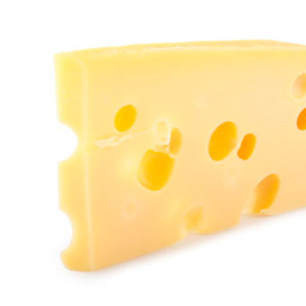 Queso Emmental con sus característicos aguejros. Elaborado con leche pasteurizada.