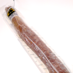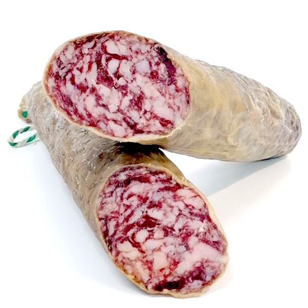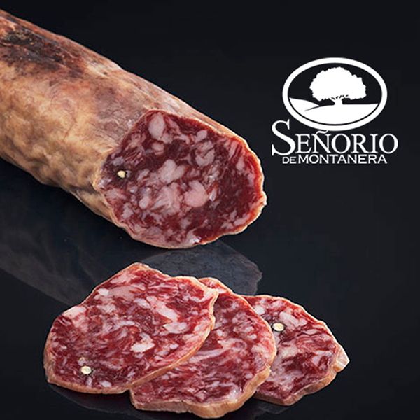 Salchichón elaborado con un excelente magro de cerdo 100% ibérico de bellota, embutido en tripa cular.