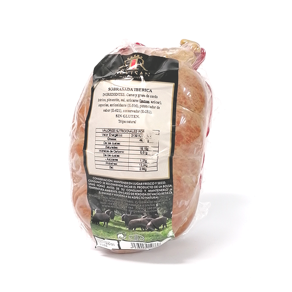 Riquísima sobrasada elaborada con panceta de cerdo ibérico.