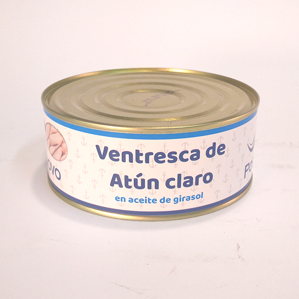 La ventresca de Atún Claro es la parte más tierna y suave del Atún. Situada en la parte inferior de los túnidos (en la zona próxima a la cabeza), la ventresca de Atún destaca por su jugosidad e exquisito sabor. Además está altamente recomendado para disminuir los niveles de colesterol, ya que tiene un alto contenido en Omega 3.